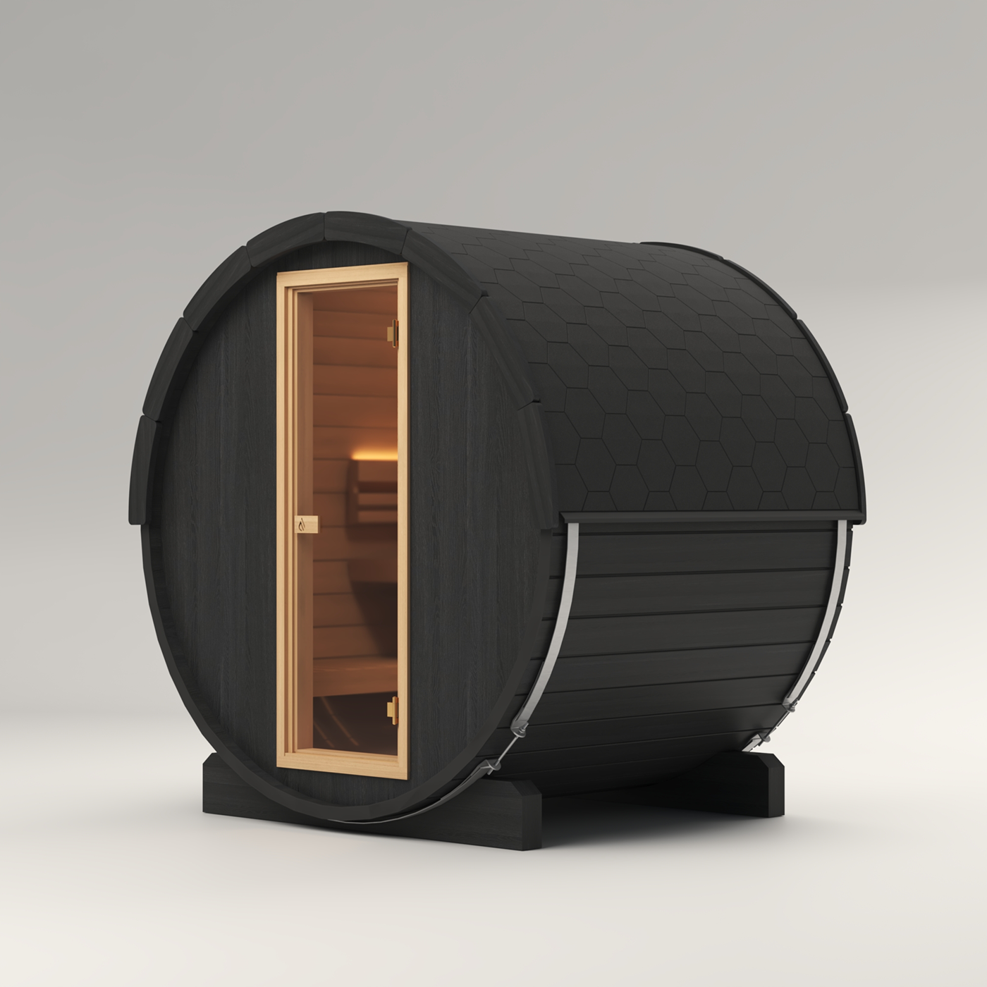 The optional full-height 8 mm bronze tempered glass front gives the Cove Barrel Sauna its distinctive, contemporary look, open, elegant, and inviting. The subtle bronze tint softens the light, enhances warmth, and provides a natural sense of privacy without enclosing the space. Precision-engineered for strength and safety, the glass front creates a seamless connection between your sauna and its surroundings, balancing transparency with tranquillity.
