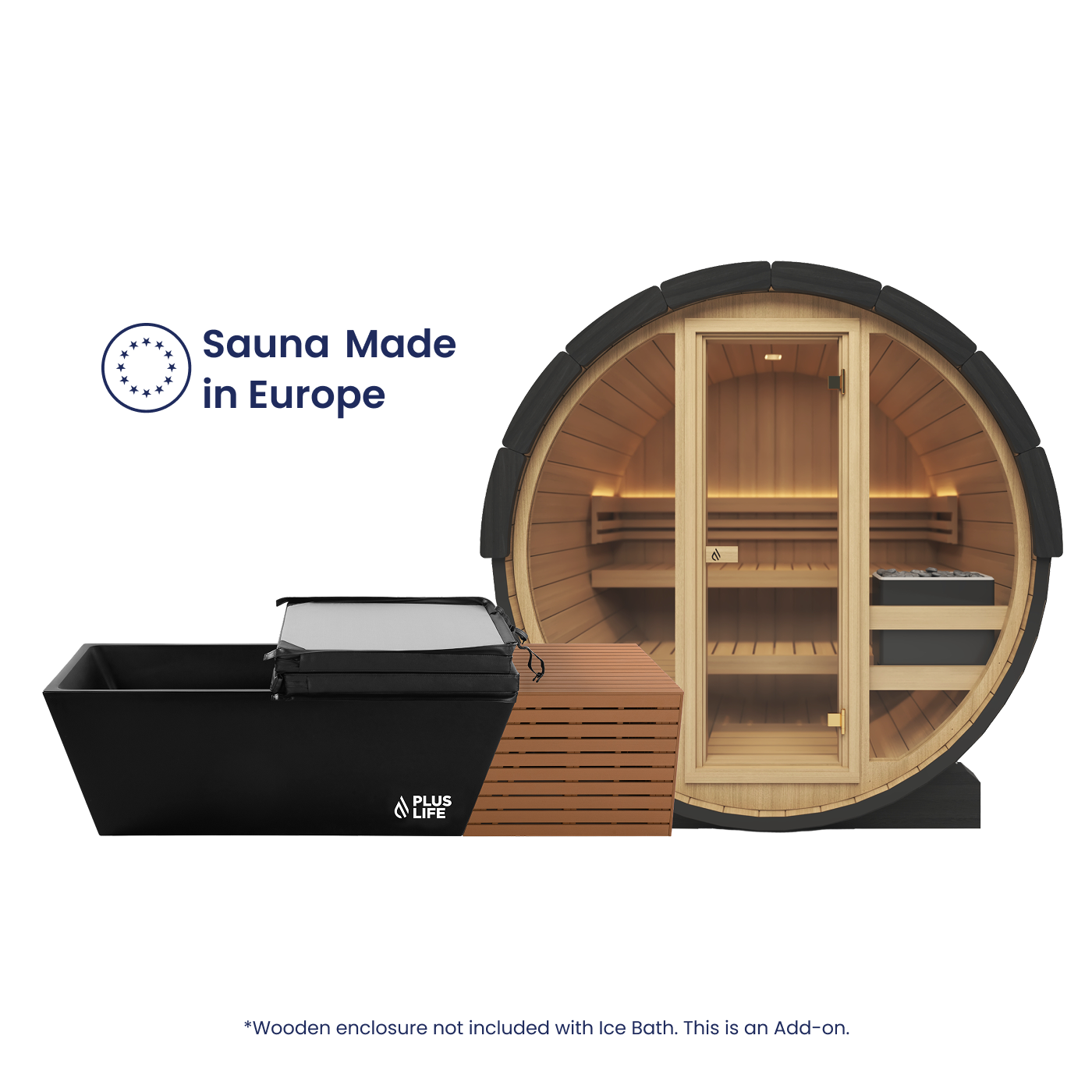 Wooden Enclosure is not included with Ice Bath. It is available to purchase separately when you add the Ice Bath to cart
