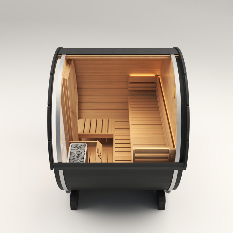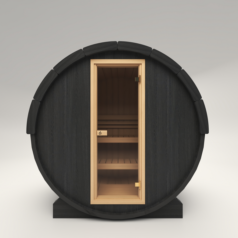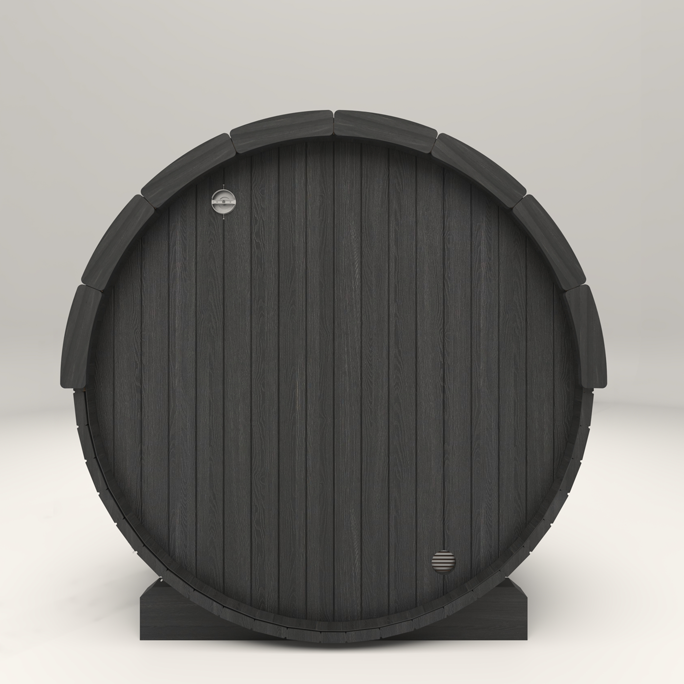 The optional full-height 8 mm bronze tempered glass front gives the Cove Barrel Sauna its distinctive, contemporary look, open, elegant, and inviting. The subtle bronze tint softens the light, enhances warmth, and provides a natural sense of privacy without enclosing the space. Precision-engineered for strength and safety, the glass front creates a seamless connection between your sauna and its surroundings, balancing transparency with tranquillity.