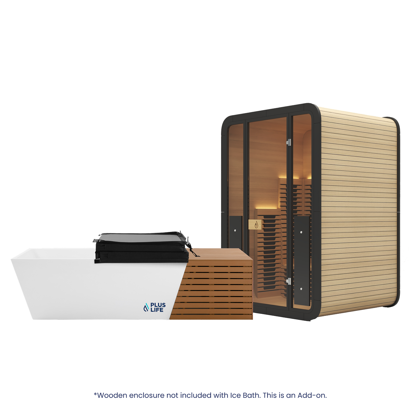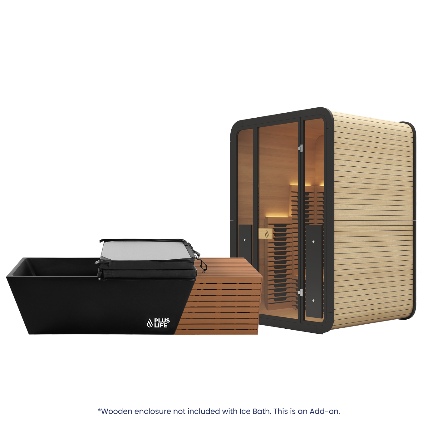 Wooden Enclosure is not included with Ice Bath. It is available to purchase separately when you add the Ice Bath to cart